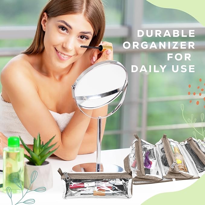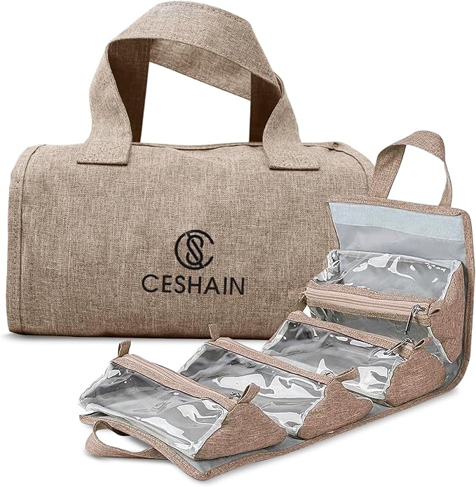 - Space Saver Design- This foldable hanging toiletry bag can store all your travel toiletry essentials giving you more space for your other stuff. Each clear pouch has a large capacity to accommodate necessities. It's a key family travel essential, assuring an organized and minimalistic packing experience