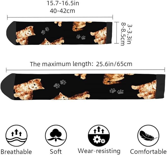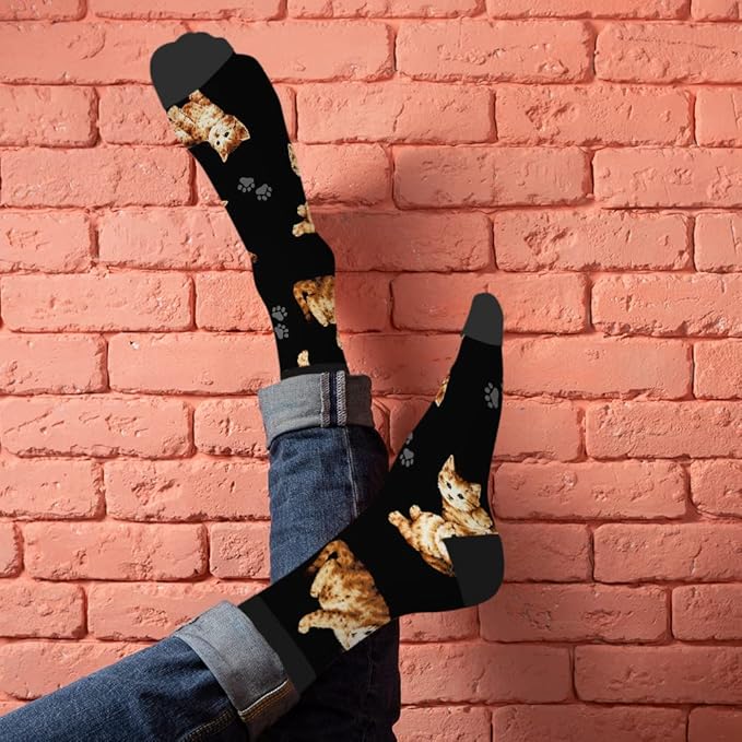 - 【One Size Fits Most】These Cat funny socks for women and men measure 16" X 3.2" , stretchy, durable and flexible. Fit Mens Shoes 6-10 Approx, Womens 8-12