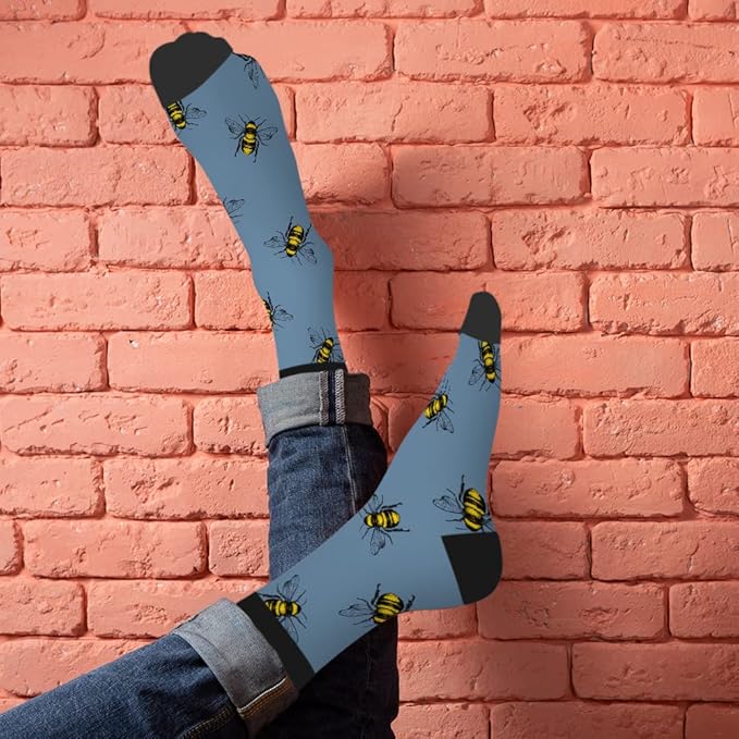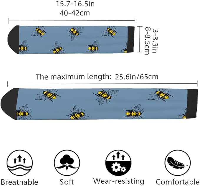 - 【One Size Fits Most】These Honey Bee funny socks for women and men measure 16" X 3.2" , stretchy, durable and flexible. Fit Mens Shoes 6-10 Approx, Womens 8-12