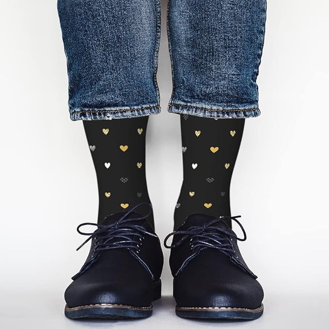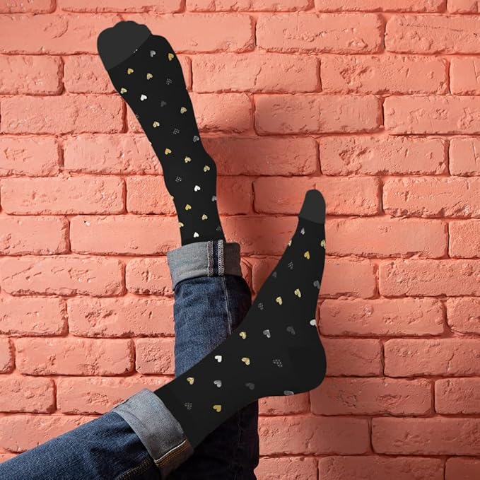 - 【One Size Fits Most】These Lovely Pattern of Hearts funny socks for women and men measure 16" X 3.2" , stretchy, durable and flexible. Fit Mens Shoes 6-10 Approx, Womens 8-12
