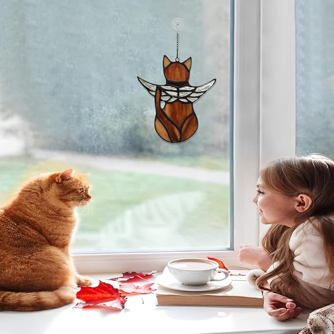 - CAT MEMORIAL GIFTS FOR CAT LOVERS: Our Angel Cat with Iridescent Wing is a Lost of Cat Sympathy Gifts for Cat Lovers,Mom,or Anyone who Loves Cats and Animals.Our Window Hangings Art Will Warm Anyone's Heart and Our Stained Glass Will be the Perfect Cat Memorial Gift,Loss of Cat Sympathy Gift,Cat Died Sympathy Gift,Pet Memorial Gifts Cat,Memorial Gifts for Cat