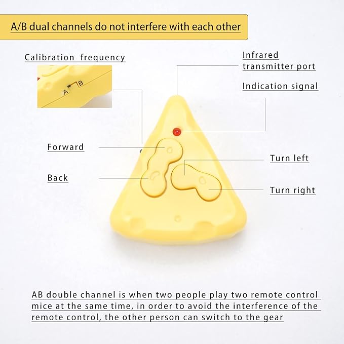 - 2 GAME MODES - A Remote control Mode: You can control the mouse to move forward, backward, left and right, press and hold the left or right button, it will rotate 360 degrees quickly.B Induction Mode: When you stop controlling the remote, pat its back with your hand, and it will switch to Induction Mode.