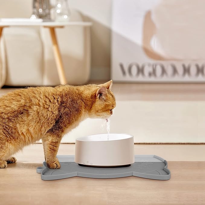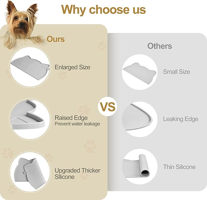 Coomazy Thicker Non-Slip Silicone Dog Mat with Raised Edge - Waterproof, Prevents Food Spills and Water Runoff (Gray, Medium)