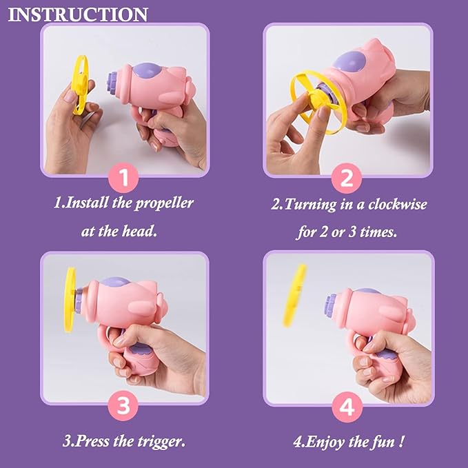 - 🐾[Easy to use] First step, please install the propeller at the head of the toy. Second step, wind up the toy by turning the propeller in a clockwise for two or three times. Finally, you can press the trigger forward the direction you wanted and the propeller will fly out. Certainly it's novel and highly efficient to play with your pet cat!