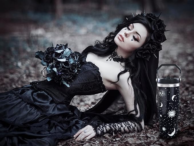 30oz Gothic Tumbler with Handle and Straw, Stainless Steel Vacuum Insulated Coffee Tumbler, Travel Mug Water Bottle, Goth Stuff Accessories Decor, Witch Gifts for Women
