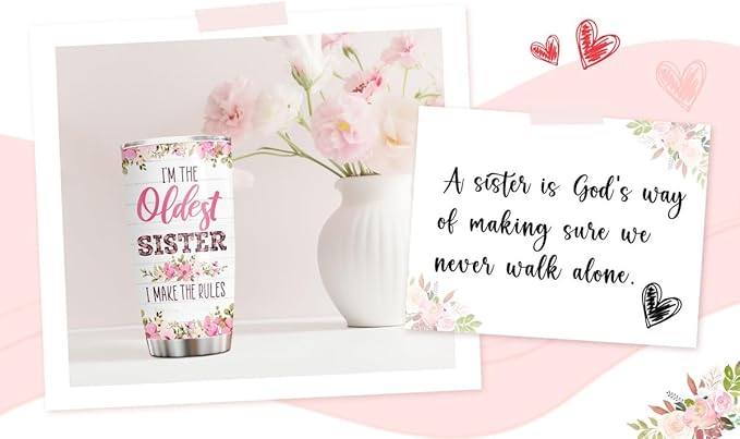34HD Sister Gifts - Oldest Sister Tumbler with Lid, 20 oz Stainless Steel, Seester Mug - Birthday Gifts for Siblings