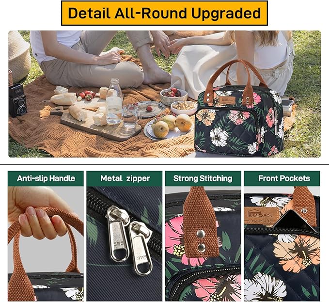 - 【STYLISH & FUNCTIONAL】Featuring a classic and spacious front pocket, as well as stylish patterns to choose from, this lunch bag is practical for work, picnics, or travel. It also makes for an ideal gift.