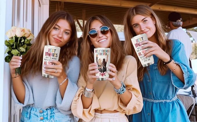 34HD Best Friend Tumbler with Lid, 20oz Insulated BFF Drinking Cup, Another Bonding Year Coffee Mug, Best Friends Gifts, Bestie Gifts for Birthday Mothers Day Christmas