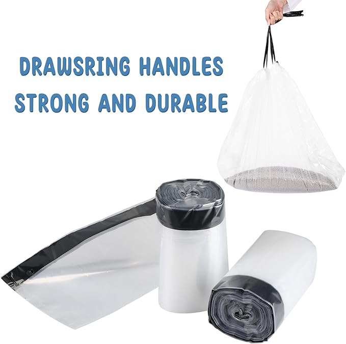 - Drawstring Design: cat litter bags adopt drawstring design, so you can grab the drawstrings, lift the bag and throw it easily, leaving no mess, which gives you a comfortable using experience