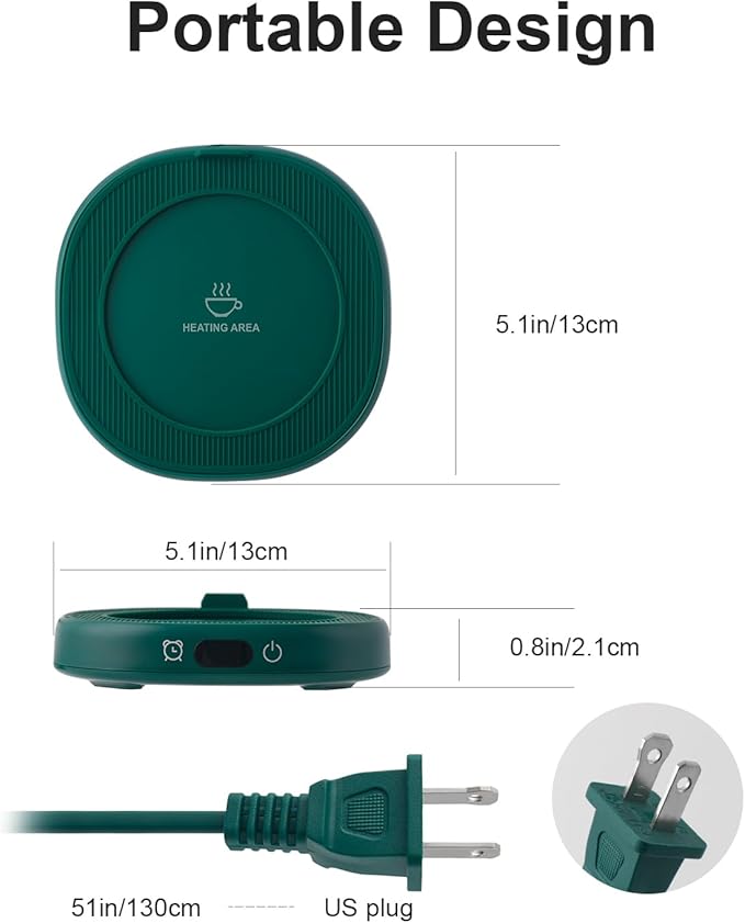 - 4.5 Inches Large Heating Plate: Each cup warmer for desk is equipped with a food-grade silicone cover to protect you from being burned while working. 4.5 Inches large heating plate, oversized base to fit for most mugs (NOT fits for plastic cups), glass cups, stainless steel cups and baby bottles, and you can even use this cup warmer for desk as a candle warmer to fill your room with fragrance. We recommend using the cup with a thin-walled, flat bottom for better heating results