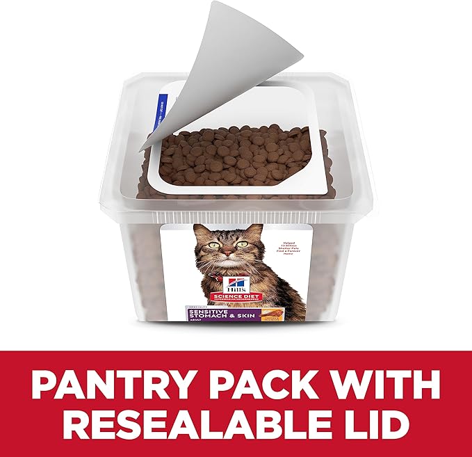 Hill's Science Diet Sensitive Stomach & Skin, Adult 1-6, Stomach & Skin Sensitivity Support, Dry Cat Food, Chicken & Rice, 20 lb Tub