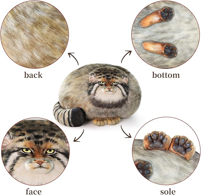 - Soft and Cuddly: Our pallas cat plush toy pillow features a cute and realistic design, perfect for kids and adults.Made with high-quality materials, this stuffed animal pillow is incredibly soft and huggable, providing comfort and companionship.