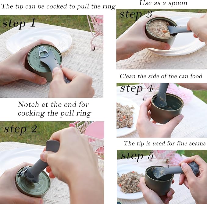 - 【Multi-functional Pet Can Opener】Both spoon and can opener. It adopts the lever principle design. which allows you to open the pet can easily; There is a stiff inner bone supporting the whole spatula.