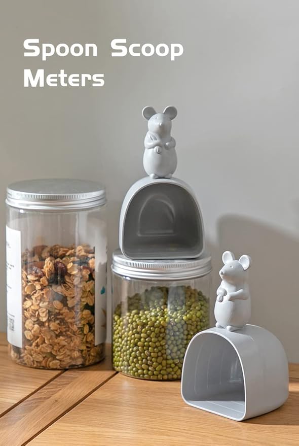 Dog Food Scoop, Pet Food Scoop, sturdy scoop for all kinds of dry foods. Cute Mouse Shape Handle Design Pet Food Can Spoon Suitable for Dogs Cats Birds, Measuring Cup (Grey)