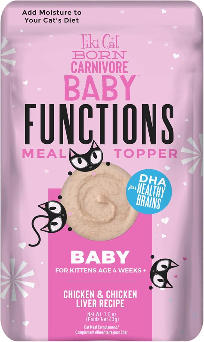 Tiki Cat Born Carnivore Baby Functional Topper Mousse, Chicken & Chicken Liver Recipe, 1.5 oz. Pouch, (Pack of 12)