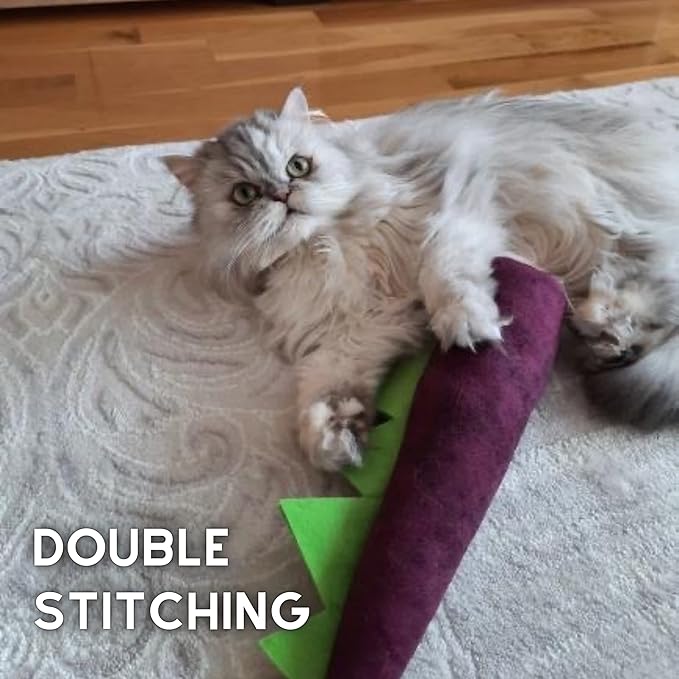 - 👨⚕️ VETERINARY DOCTOR APPROVED: On DINO, from the filling materials inside to the types of fabric used outside, each one was selected by the veterinarian, considering the most suitable products for cats.The catnip matatabi silvervine in our large cat toy helps relieve stress.