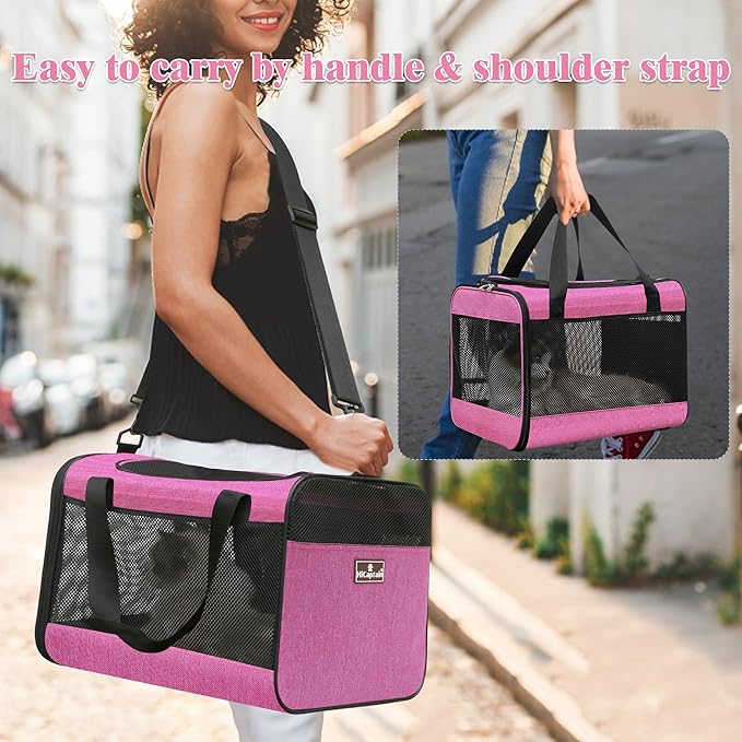 HiCaptain Pink Cat Carrier Bag, Lightweight Soft Cat Carrier with Top Mesh Window, Breathable Pet Carrier for Medium Cats and Small Dogs Puppies up to 15 lb - Pink