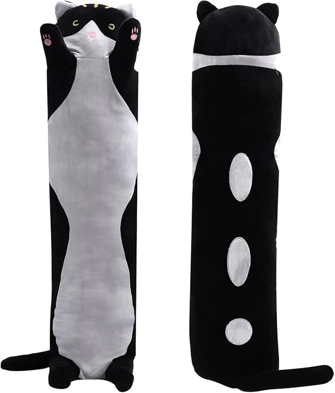 shangman Lovely Plush Cat Doll Cute Cartoon Soft Stuffed Kitten Pillow Long Throw Sleeping Pillow Doll Toy Valentines Day Gift for Kids Girlfriend (Black, 130cm/51.1in)