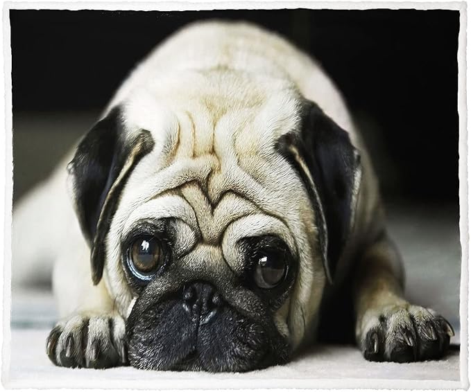Pug Sherpa Blanket, Dog Print Fleece Throw Blankets for Couch Sofa Bed, Super Soft Warm and Lightweight, 60" x 80"