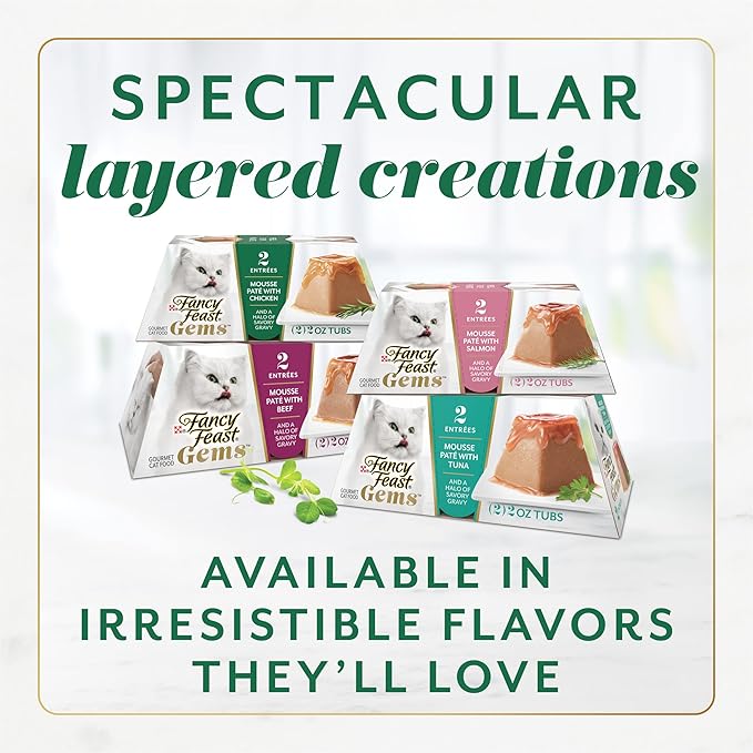 - Spectacular layered creations featuring delicious mousse pate cat food topped with a layer of mouthwatering gravy