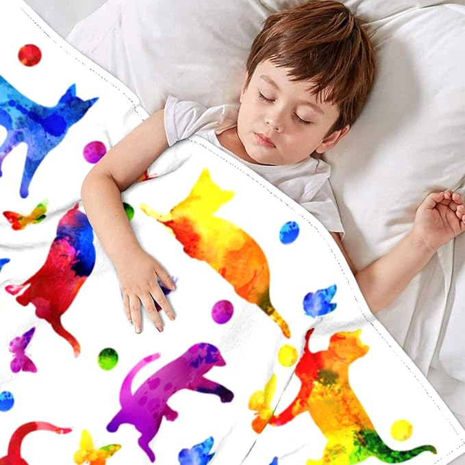Cute Cat Blanket Super Soft Flannel Throw Blanket Bedding Cat Gifts for Cat Lover Woman Kids Adults 80"x60"