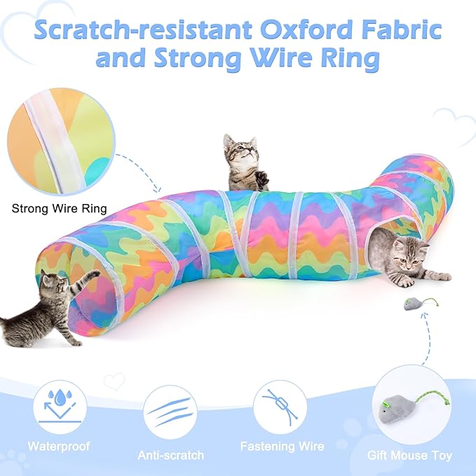 - Good Toy: The guinea pig tunnels and tubes are made of polyester fabric and strong steel ring structure; It not only can withstand the cat's cat scratches, but also will not collapse easily; Provide a safe space for cats to play with confidence and boldness