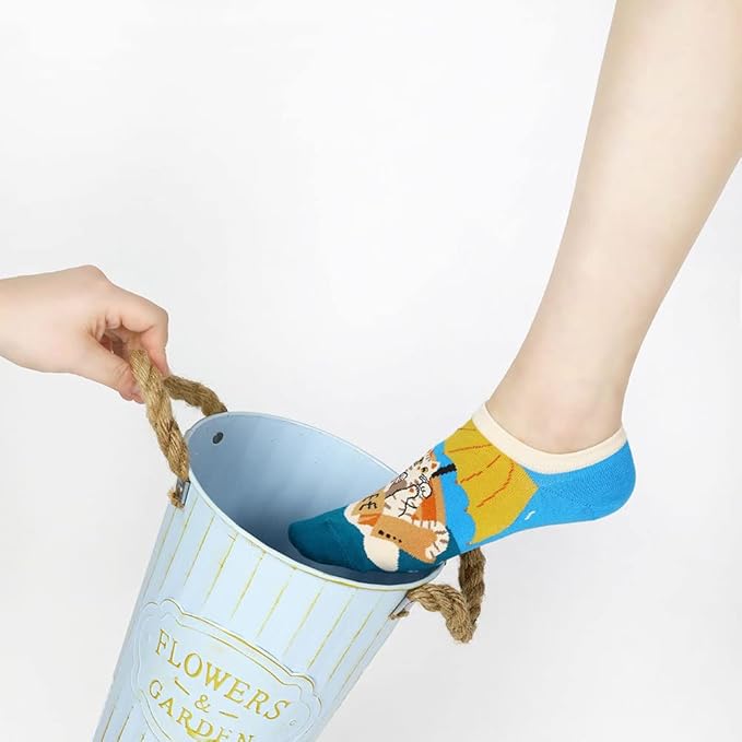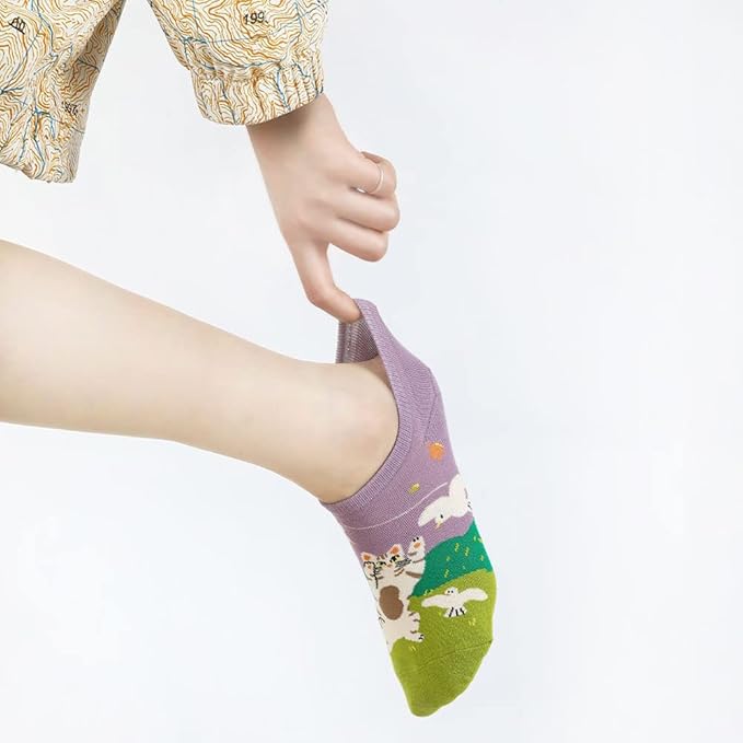 Angelteers 5 Pairs Cute Cartoon Animals Thin Cotton No Show Socks for Women Teen (US, Alpha, One Size, Regular, Regular, Cat)