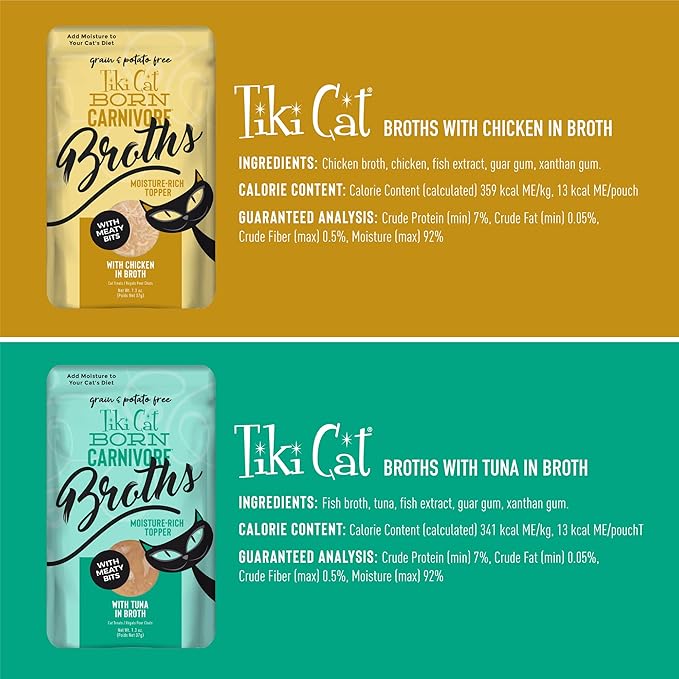 Tiki Cat Born Carnivore Broths Wet Cat Food Topper, Variety Pack 1.3 oz. Pouch (24 Count)