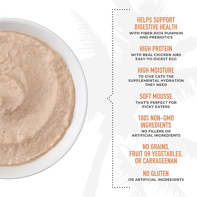 Tiki Cat Special Digestion Mousse, Chicken & Egg Recipe in Broth, Formulated to Support Healthy Digestion, Functional Wet Cat Food, 2.4 oz. Pouches (12 Count)
