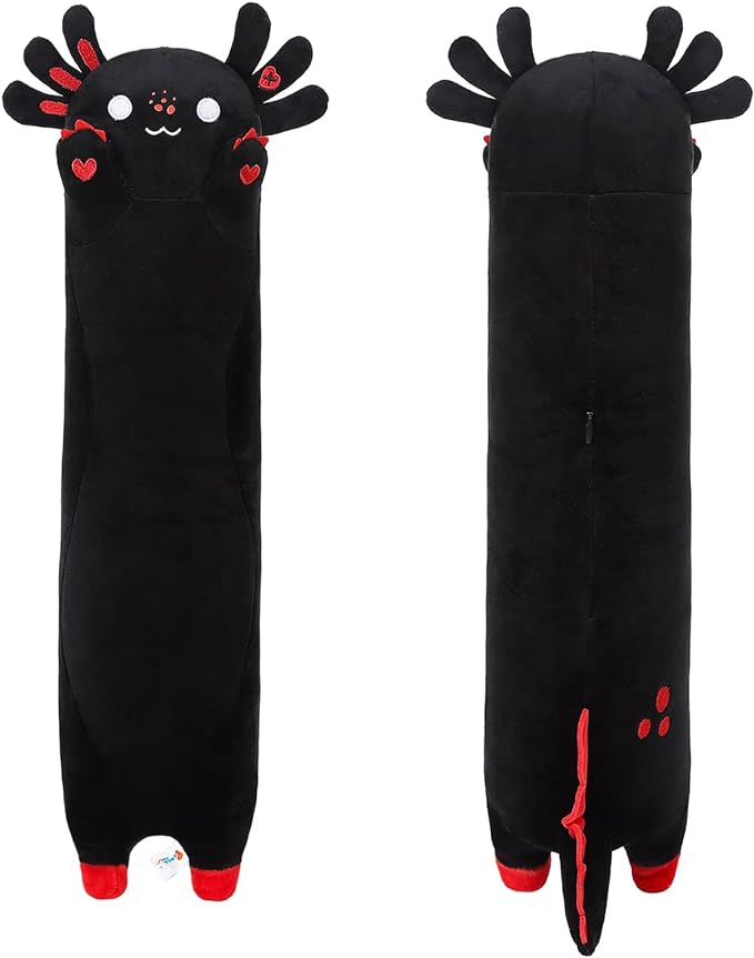 PEACH CAT Long Black Axolotl Plush Pillow Soft Stuffed Animal Axolotl Plushie for Kids 19.6"