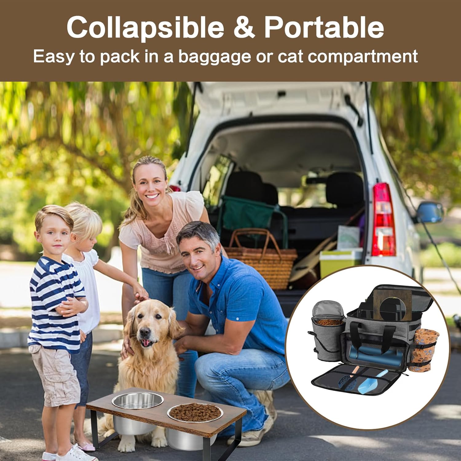 Elevated Dog Bowls for Small Medium Wood Dogs Raised Bowl Stand with 2 Stainless Steel Deep Dog Food and Water Bowls, Anti Vomit, Non-Slip Feeding Dishes(Tilted,3 inches in Height, 40oz