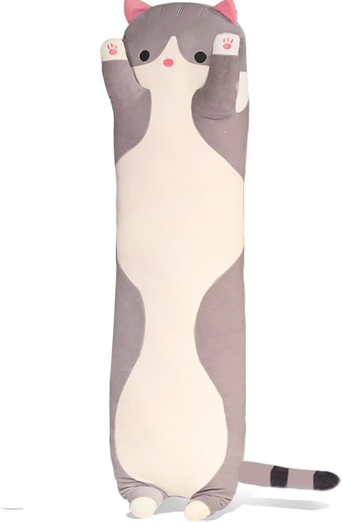Grey Cat Long Plush Pillow Kitty Stuffed Animals Soft Sleeping Throw Pillow Doll Toy (Grey,35inches)
