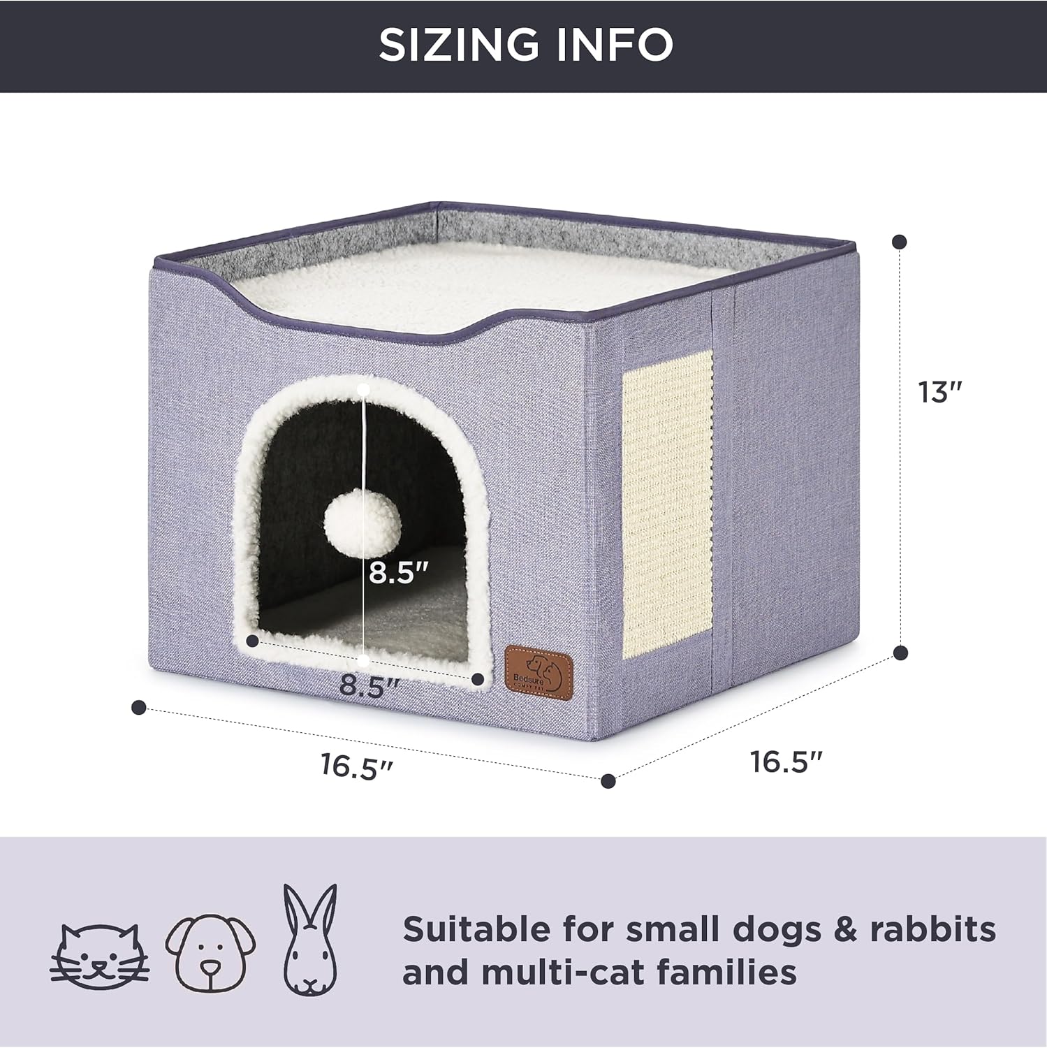 - Pet Safe Design: Cat hideaway made from pet-friendly MDF materials with CARB Certification and soft lambswool fabric. This large cat house is equipped with a durable sisal scratching board and plush hanging ball to keep your cat engaged and happy.