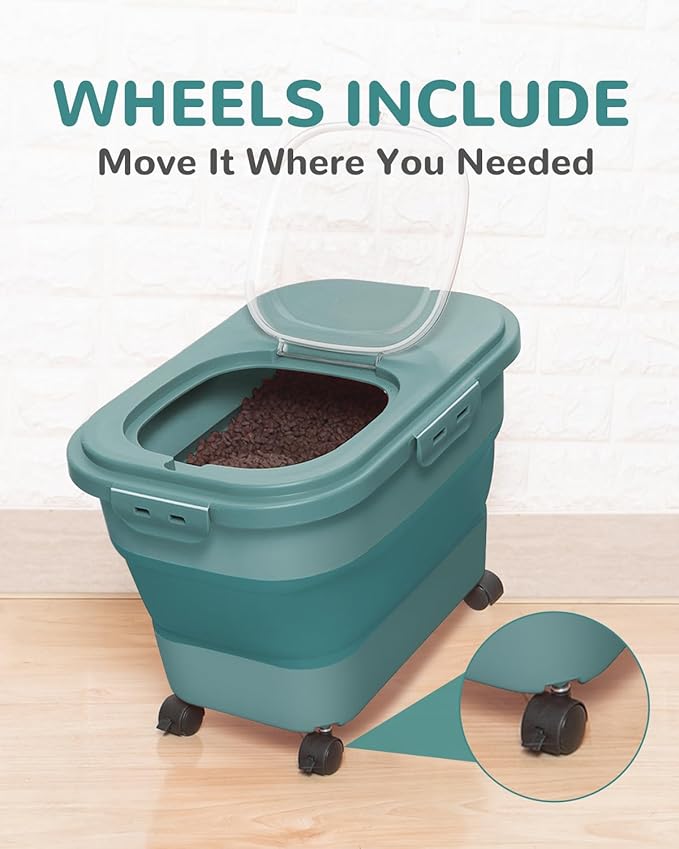 20-23 Lbs Dog Food Storage Container - Collapsible Dog Food Container with Attachable Casters and Scoop,Travel Silicone Bowl, Pet Food Storage Containers to Keep Dry Food Fresh,Easy to Move