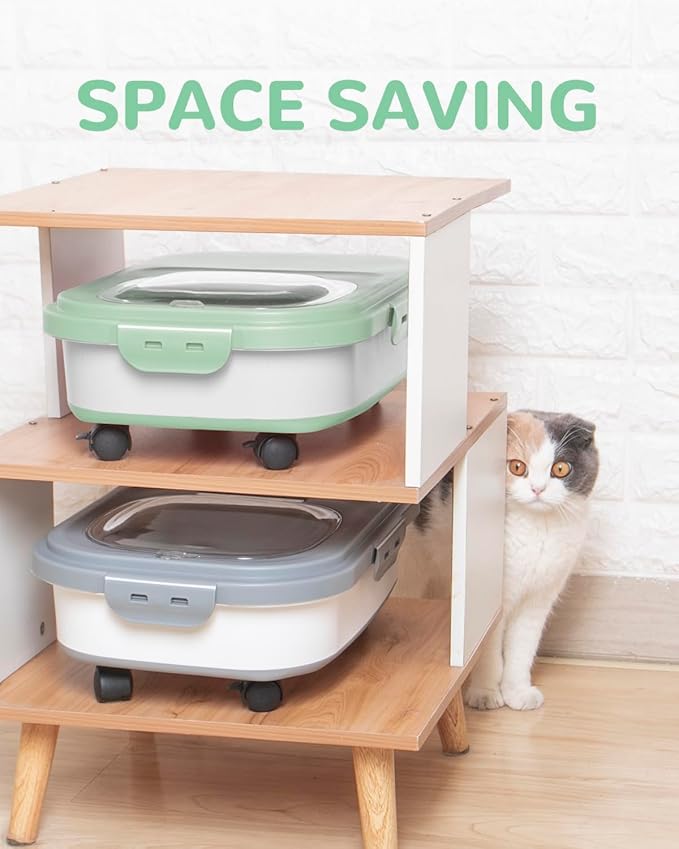 - BUILT-IN DETACHABLE WHEELS: Tired of lugging heavy bags of pet food around? Our dog food container is thoughtfully designed with 4 detachable rolling wheels, making it a breeze to move from one place to another. Whether you're relocating it to another room or taking it outdoors for a picnic with your pets, the smooth rolling wheels ensure a hassle-free experience