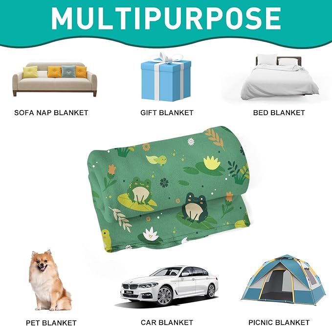 - 【VERSATILE YEAR-ROUND COMPANION】Embrace comfort all year long with our versatile frogs throw blanket. Its breathable and lightweight nature keeps you cozy during chilly nights and offers a touch of warmth on cool summer evenings.