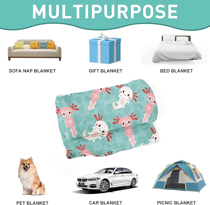 - 【VERSATILE YEAR-ROUND COMPANION】Embrace comfort all year long with our versatile axolotls throw blanket. Its breathable and lightweight nature keeps you cozy during chilly nights and offers a touch of warmth on cool summer evenings.