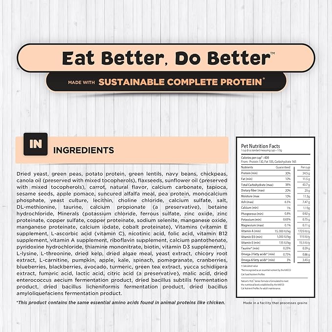 Nature's HUG Dry Cat Food, for Senior-All Breeds, 10 lb. Bag, Just Like Chicken Recipe, Grain Free & Hypoallergenic, Supports Microbiome Health, Sustainable Complete Protein & Balanced Nutrition