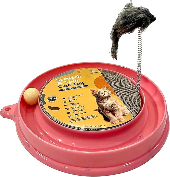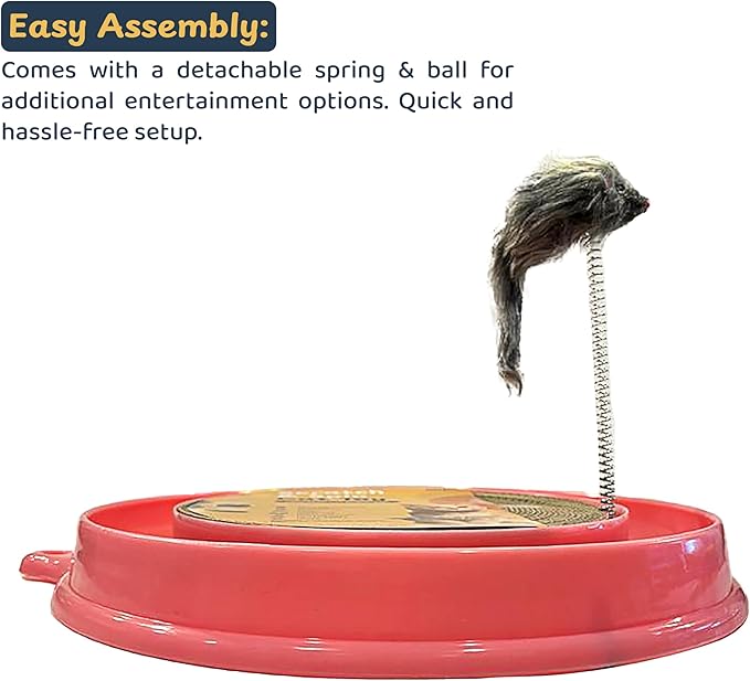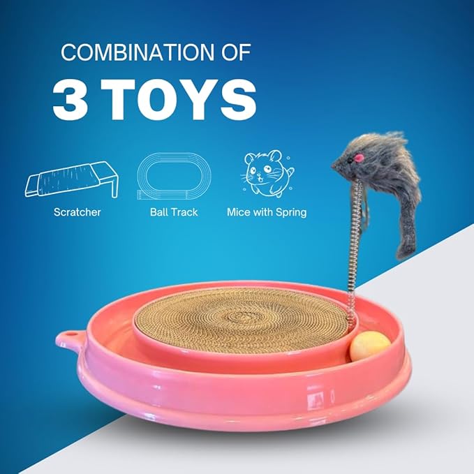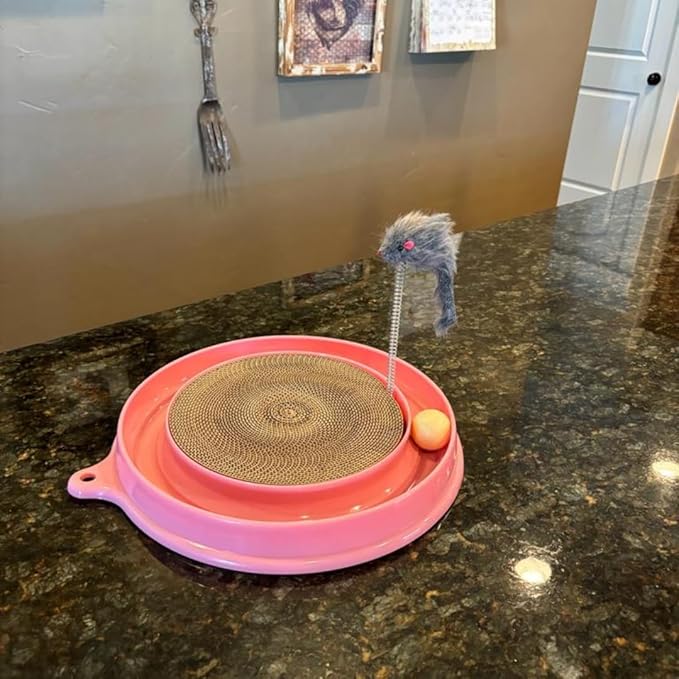 Scratcher Cat Toy with Ball Track Assorted Colors Pad Board for Indoor Play Physical Interactive Toy with Spring & Ball. Perfect for Chasing, Hunting, Mental & Physical Exercise Puzzle (Pink)