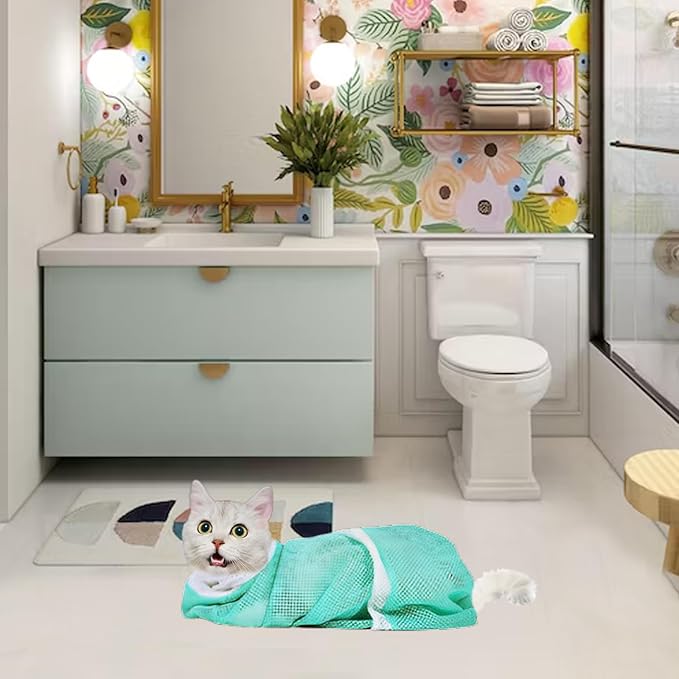 - 🐱【Easy to Use】The size of 21.6 inch long and 12 inch in head circumference, the cat’s body can be wrapped completely ,The cat bathing bag set is a good helper for pet care , saving you lots of energy on cat’s bathing .