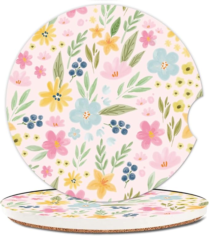 Absorbent Car Cupholder Coaster 2 Pack, Cute Car Coasters with a Finger Notch for Women & Men,2.56" Ceramic Stone & Non-Scratch Cork Base Drink Coasters, Cute Auto Accessories Gifts