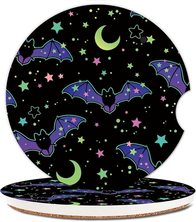 Absorbent Car Cupholder Coaster 2 Pack, Cute Car Coasters with a Finger Notch for Women & Men,2.56" Ceramic Stone & Non-Scratch Cork Base Drink Coasters, Cute Auto Accessories Gifts