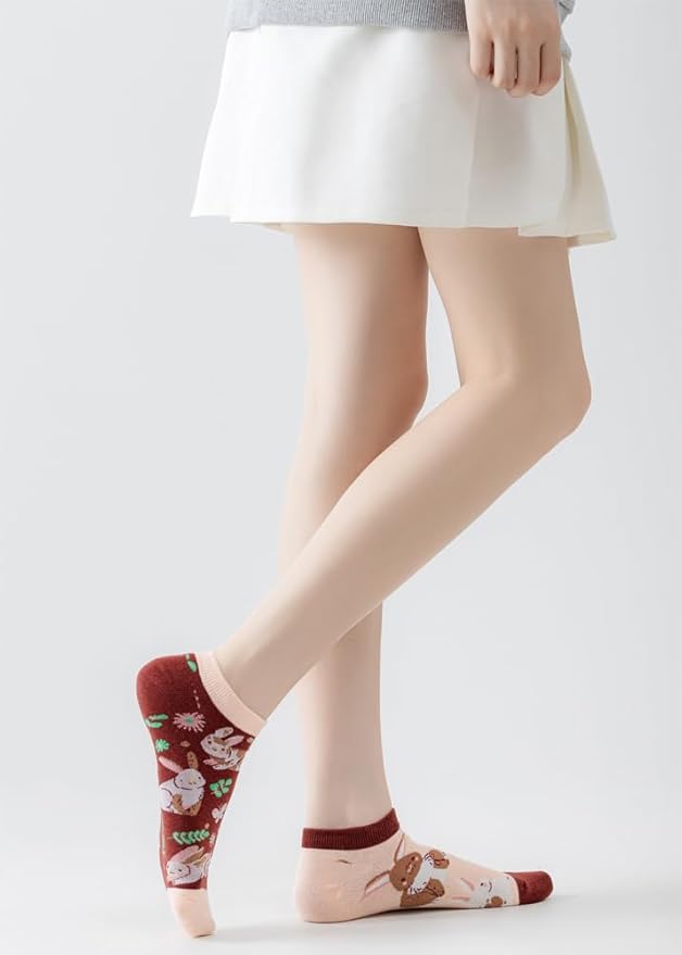 2 Pairs Funny Cartoon Animal Print Cotton Ankle Socks for Women Teens
