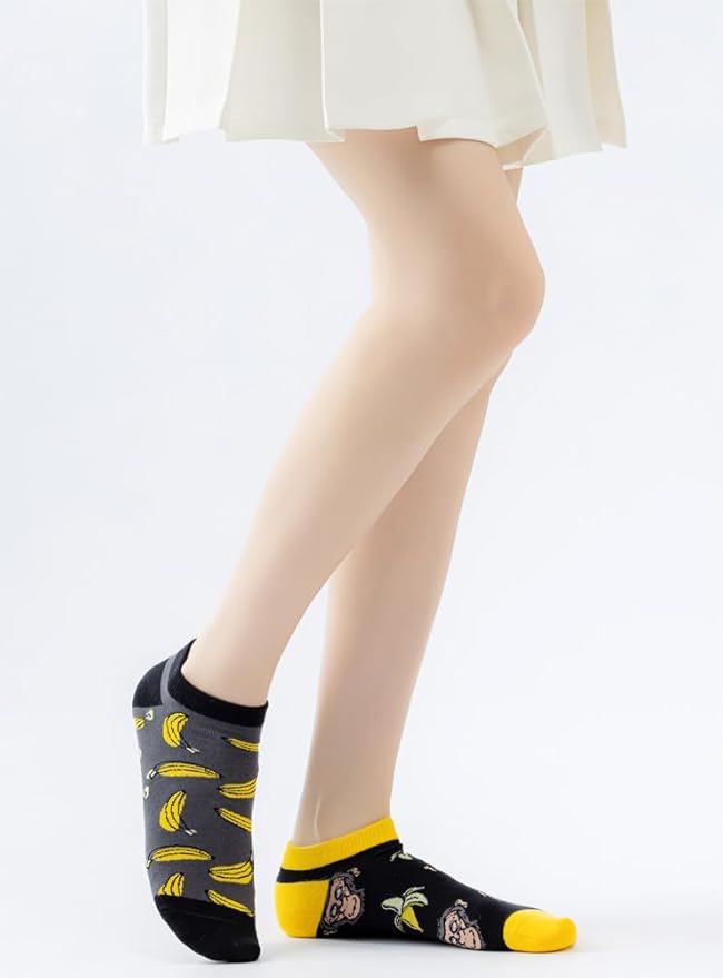 2 Pairs Funny Cartoon Animal Print Cotton Ankle Socks for Women Teens