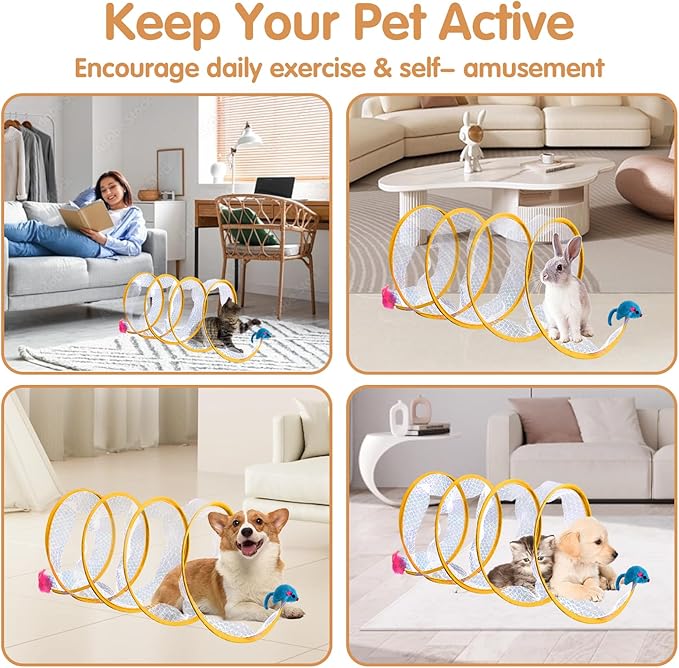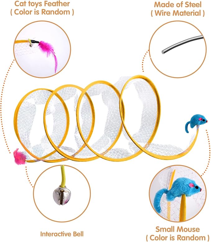 - S-typed Spring Design: : The pet tunnels and tubes for cats offers interactive & independent amusement, you can hold one end of the tunnel to tease cats or cats can self play when you are not at home.
