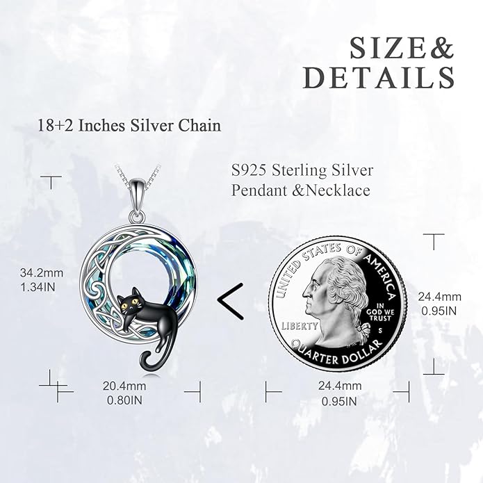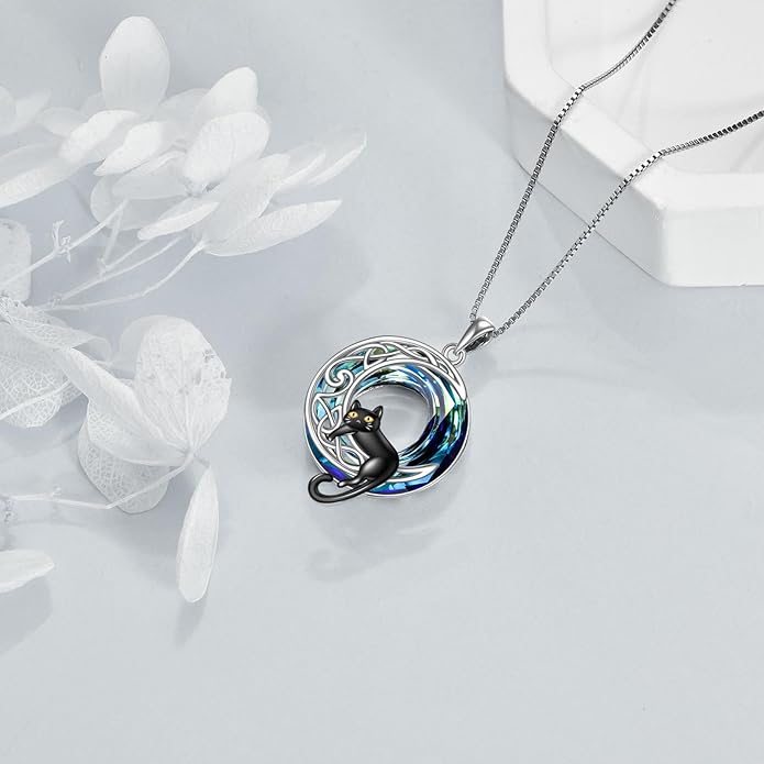 • 😻【Cat Gifts for Cat Lovers】Black cats are known as guardians, a symbol of luck and mystery, a cozy black cat lying on the Celtic moon radiates endless charm, blue crystals emit brilliant light, no matter where you are, this Black Cat Crystal Moon Necklace attracts the attention and admiration of others. It is not only a piece of jewelry, but also a unique work of art that shows off your taste and personality.
