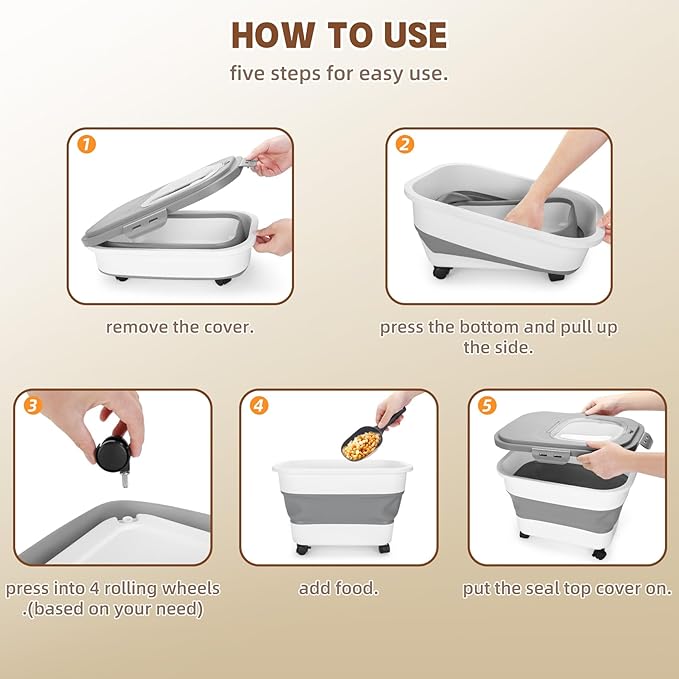 Dog Food Storage Container 17 lb, Airtight Pet Food Storage Containers with Wheels & Removable Sealed Lid, Collapsible Cat Food Containers Dry Food with Scoop and Measuring Cups