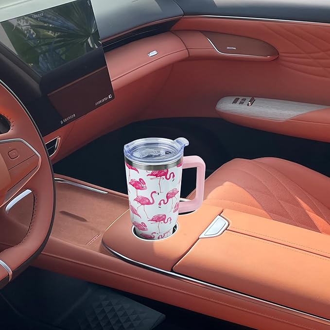 40 oz Tumbler with Handle and Straw, Stainless Steel Insulated Cup with Leak Proof Lid and Straw Lid, Keep Drinks Cold and Hot for Hours(Flamingo)