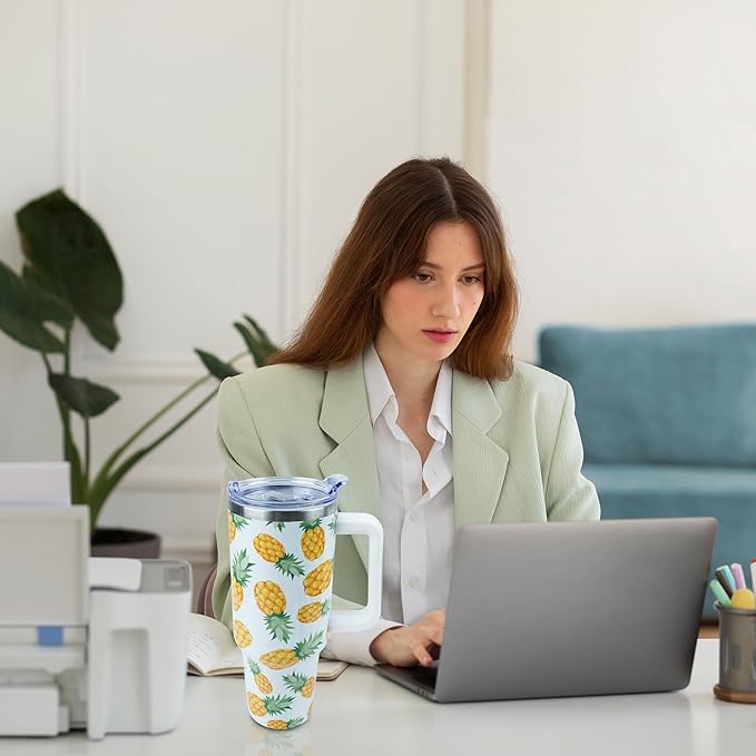 40 oz Tumbler with Handle and Straw, Stainless Steel Insulated Cup with Leak Proof Lid and Straw Lid, Keep Drinks Cold and Hot for Hours(Pineapple)