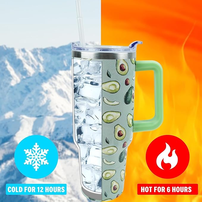 40 oz Tumbler with Handle and Straw, Stainless Steel Insulated Cup with Leak Proof Lid and Straw Lid, Keep Drinks Cold and Hot for Hours(Avocado)